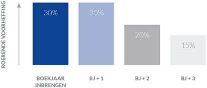 - 30% voor de dividenden verleend of toegekend uit de winstverdeling van het boekjaar van de inbreng zelf en uit de winstverdeling van het eerste boekjaar na dat van de inbreng.